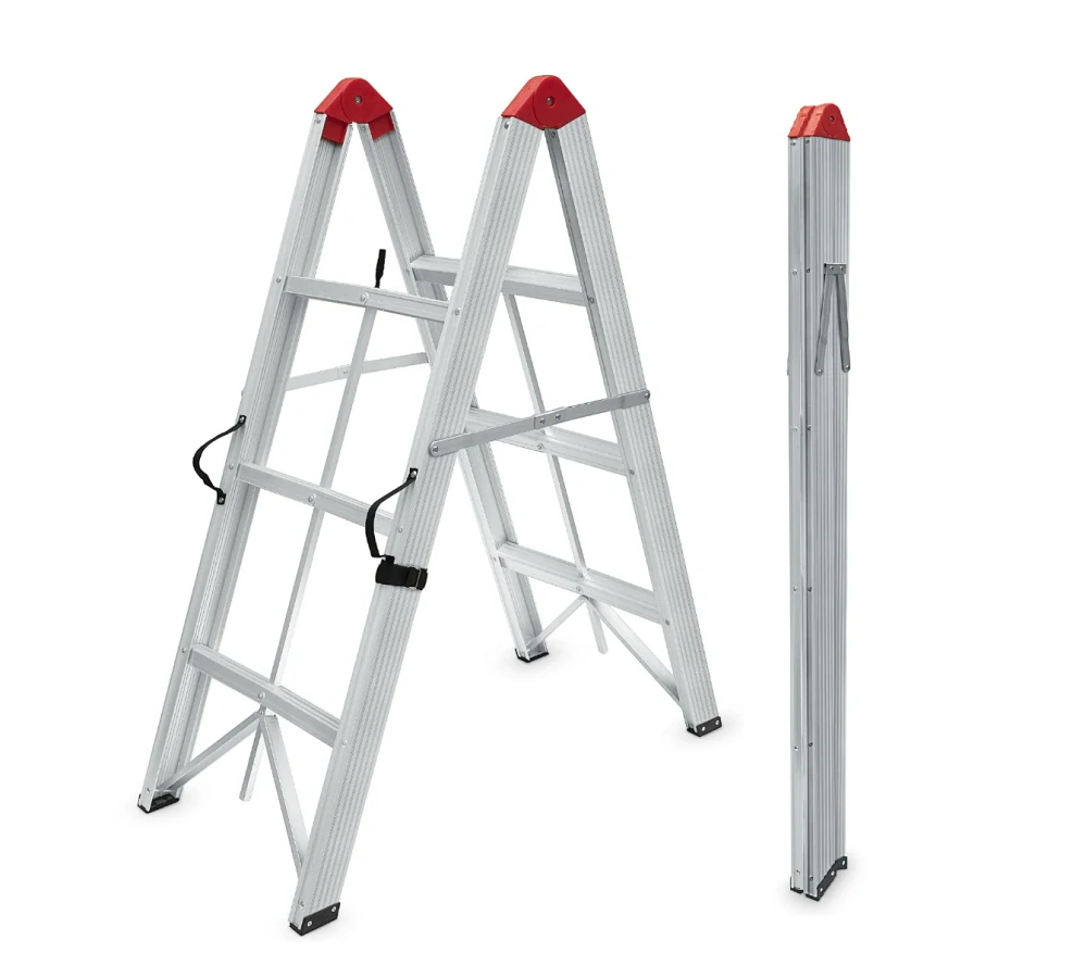 Lehká hliníková konstrukce zajišťuje snadné přenášení a pohodlnou manipulaci i ve stísněných prostorech. Ve složeném stavu zaberou schůdky minimum místa, což usnadňuje jejich skladování i přepravu.